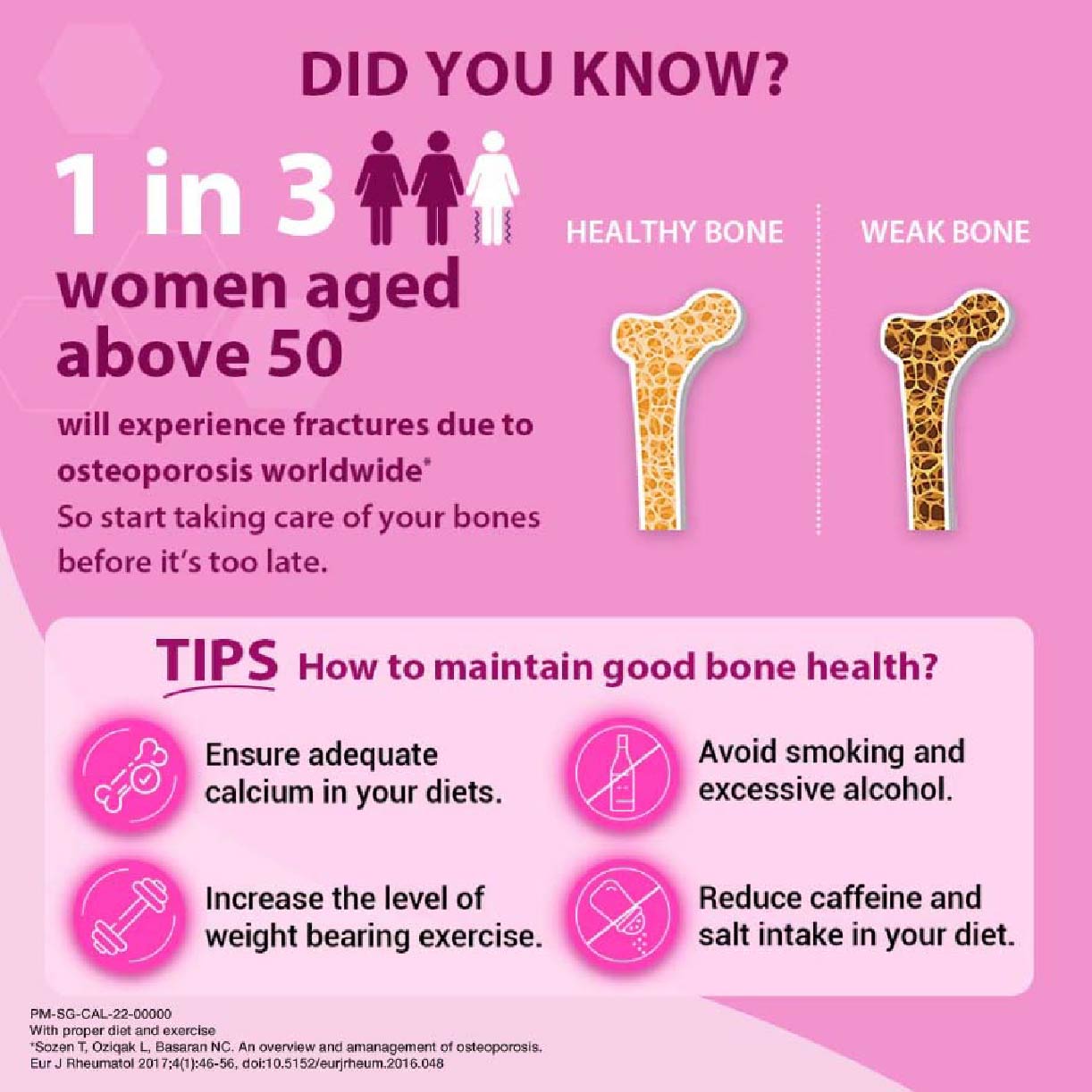 Caltrate® Bone & Muscle Health contains 600mg of Elemental Calcium for bone health and 500IU Vitamin D3 for good muscle health.