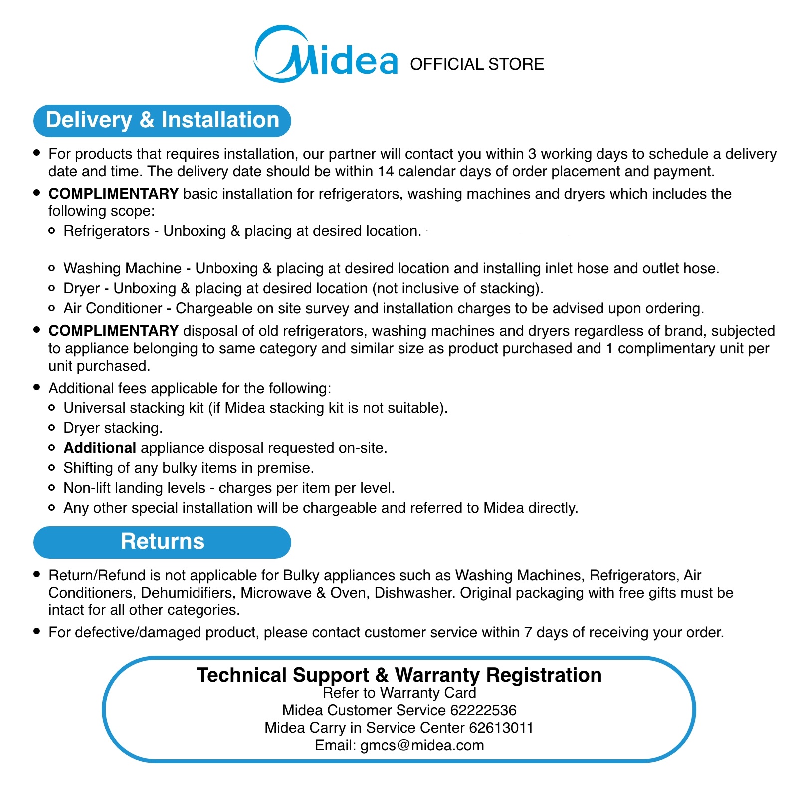 [Bulky] Midea MDRC207FZG01-SG White Chest Freezer, 142L, Energy Rating A+