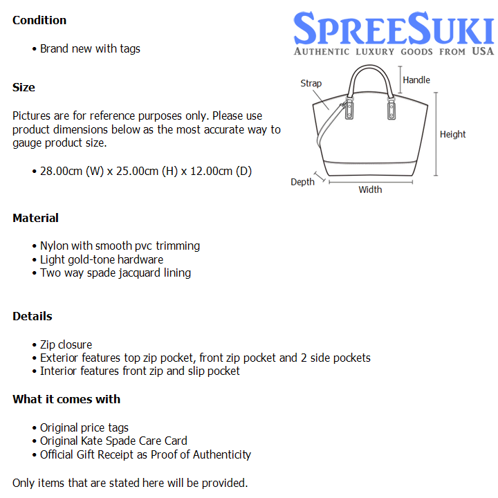 All our products are 100% authentic and purchased from Kate Spade stores in USA. We are a reputable registered business in Singapore and it is illegal to sell counterfeit goods in Singapore. This product also comes with a gift receipt which is printed by the Kate Spade store that we purchased the item from. It states the item that we purchased and the Kate Spade store that it was purchased from, proving the authenticity of the item. Buy with confidence.