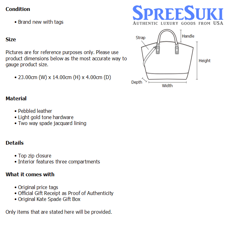 All our products are 100% authentic and purchased from Kate Spade stores in USA. We are a reputable registered business in Singapore and it is illegal to sell counterfeit goods in Singapore. This product also comes with a gift receipt which is printed by the Kate Spade store that we purchased the item from. It states the item that we purchased and the Kate Spade store that it was purchased from, proving the authenticity of the item. Buy with confidence.