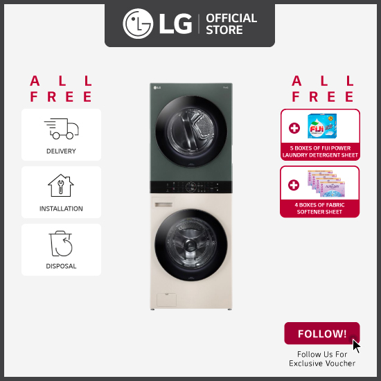 [Bulky] LG Front Load WashTower WT2116NHEG 21/16kg Objet Collection(Nature Green / Nature Beige) + Free Delivery + Free Installation + Free Disposal