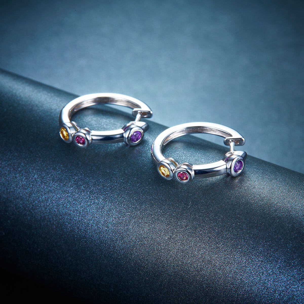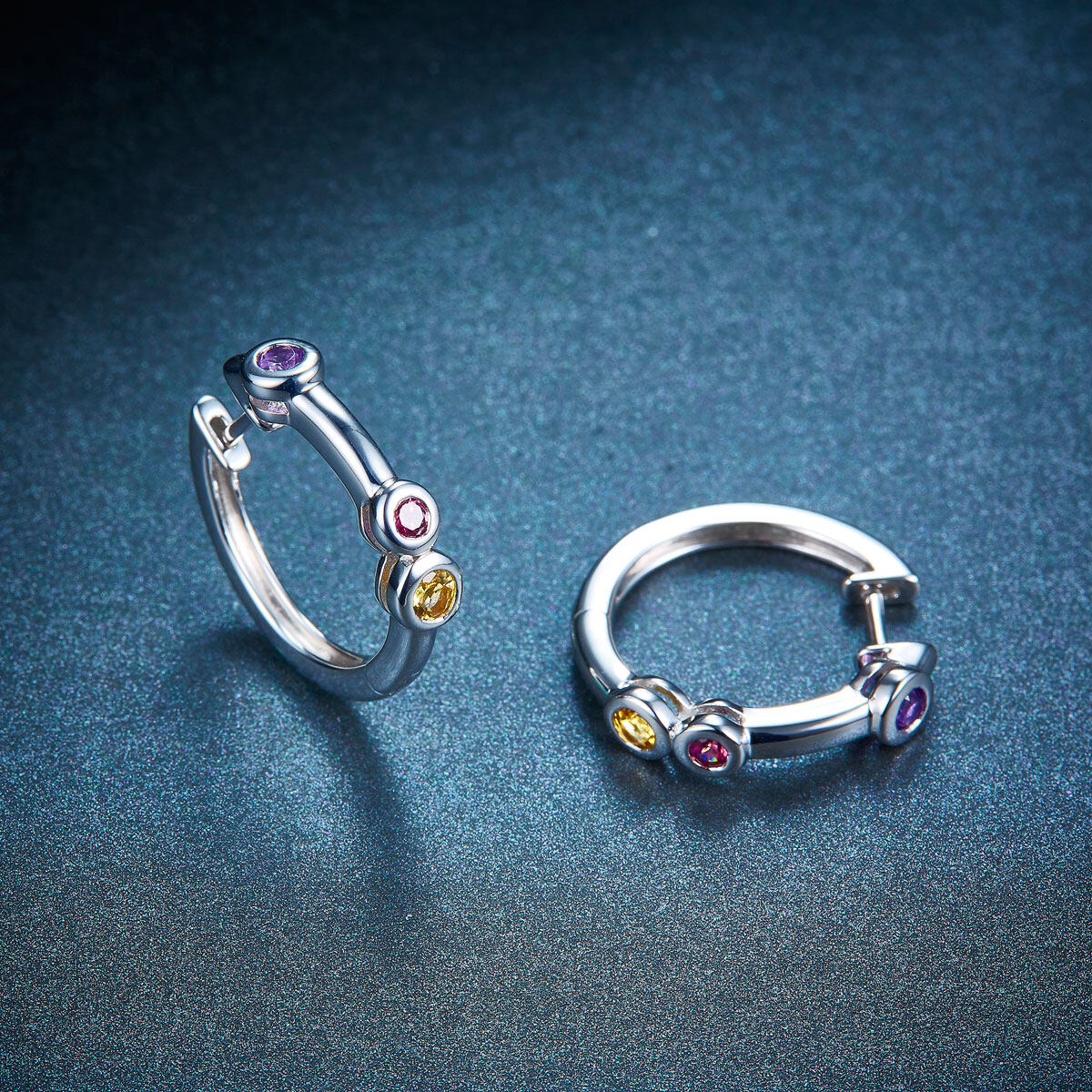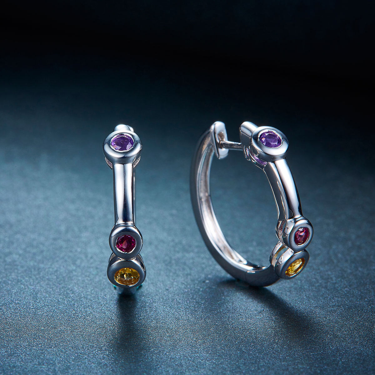 Hoop Huggie Earrings Real 925 Silver for Women Amethyst Citrine Garnet Natural Wedding Jewelry