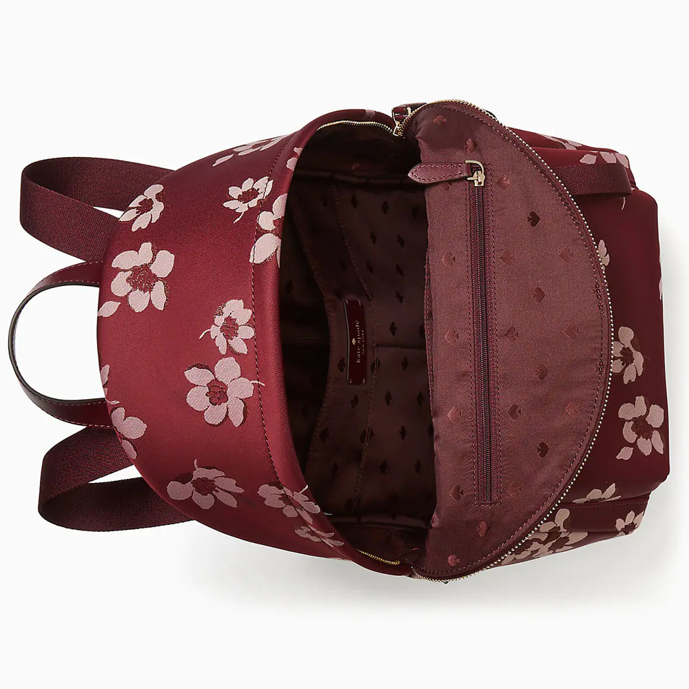 Kate Spade Backpack In Gift Box Medium Backpack Chelsea The Little Better Dancing Blooms Deep Berry Red # K9384