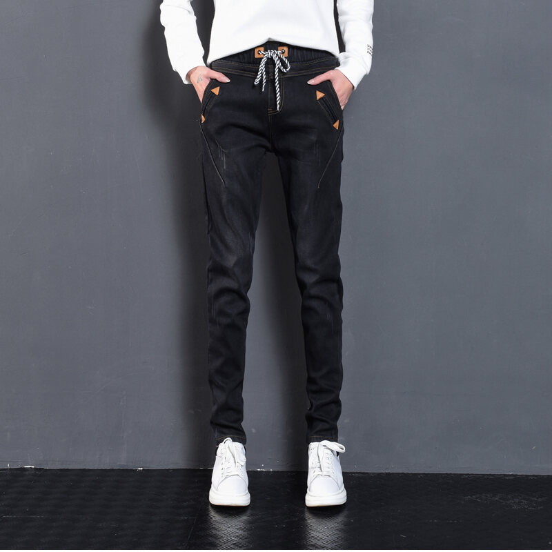 Elastic Waist High Waist Jeans Women's Spring and Autumn Korean Style Skinny Pants Loose Slimming Pants 2021 New Harlan Trousers